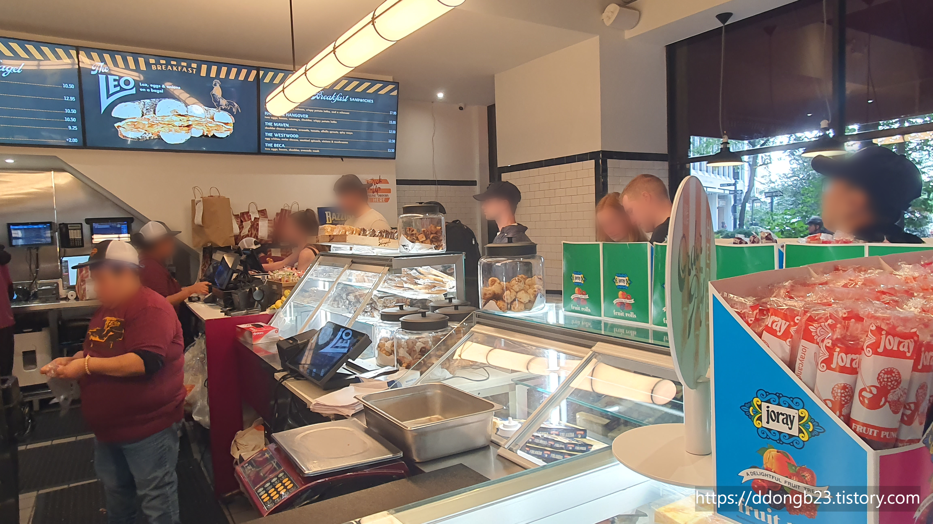이름은 레오스 베이글(Leo's Bagels)입니다. 정통 뉴욕 스타일 베이글을 판매하는 곳인데요. 손으로 직접 반죽하고 삶은 뒤에 구워내는 방식으로 유명한 베이글 전문점이에요. 뉴욕은 베이글 3 대장이 있는데요. 에싸 베이글, 러스 앤 도터스, 앱솔루트 베이글스가 있어요. 제가 방문한 레오스 베이글은 3 대장은 아니지만, 거의 4 대장급은 된다고 보면 됩니다ㅋㅋ